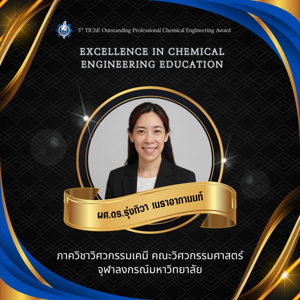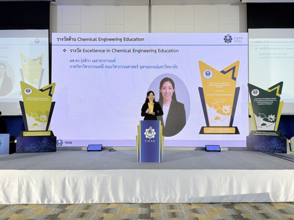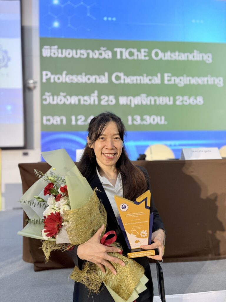 Faculty of Engineering, Chulalongkorn University, wishes to extend its sincere congratulations to Assistant Professor Dr. Rungthiwa Methaapanon, Department of Chemical Engineering on the occasion of receiving the “TIChE Outstanding Professional Chemical Engineering Award 2025 – Excellence in Chemical Engineering Education” from the Thai Institute of Chemical Engineering and Applied Chemistry (TIChE).