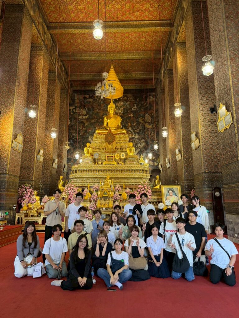 Beyond the classroom, the program offered immersive experiential learning. Students traveled to Chonburi for team-building exercises at Khao Kheow Open Zoo, participated in a Thai Cooking Class, and explored Thailand’s rich heritage during a one-day trip to Museum Siam and Wat Phra Chetuphon (Wat Pho). The program concluded with a Cultural Exchange Presentation, where Thai and Japanese students shared their unique traditions and personal insights gained during the exchange.