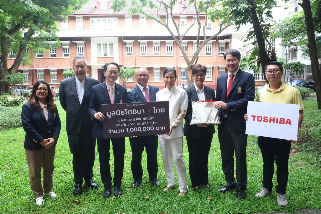 เมื่อวันที่ 22 กันยายน 2568 คณะวิศวกรรมศาสตร์ จุฬาลงกรณ์มหาวิทยาลัย นำโดย รองศาสตราจารย์ ดร.วิทยา วัณณสุโภประสิทธิ์ คณบดี พร้อมด้วย ผู้ช่วยศาสตราจารย์ ดร.พงษ์แพทย์ เพ่งวาณิชย์ รองคณบดี และอาจารย์ ดร.กมลทิพย์ พลอยกระจ่าง ผู้ช่วยคณบดี รับมอบทุนสนับสนุนการศึกษาให้กับนิสิตคณะวิศวกรรมศาสตร์ จำนวน 1,000,000 บาท จากมูลนิธิโตชิบา – ไทย โดย คุณกอบกาญจน์ วัฒนวรางกูร ประธานกรรมการ กลุ่มบริษัทโตชิบา ประเทศไทย คุณกนิษฐ์ เมืองกระจ่าง ประธานบริษัท ไทยโตชิบา อุตสาหกรรม จำกัด คุณกนก สุริยสัตย์ กรรมการบริษัท สวนอุตสากกรรม บางกะดี จำกัด คุณยูอิจิโร่ ยามากูจิ ประธานบริษัท โตชิบา เอเชียแปซิฟิค (ประเทศไทย) จำกัด และผู้แทนจากมูลนิธิ โตชิบา-ไทย