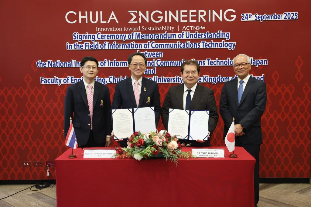 เมื่อวันที่ 24 กันยายน 2568 คณะวิศวกรรมศาสตร์ จุฬาลงกรณ์มหาวิทยาลัย ร่วมกับ NICT Asia Center จัดงาน 10th Anniversary Event ณ TrueLab คณะวิศวฯ จุฬาฯ เพื่อเฉลิมฉลองวาระครบรอบ 10 ปีแห่งความร่วมมือทางวิชาการ