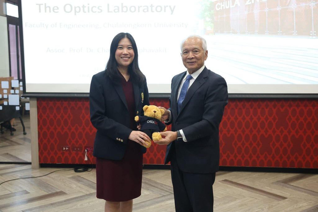 หลังจากนั้น ได้เข้าพบ ศาสตราจารย์ ดร.วิเลิศ ภูริวัชร อธิการบดี จุฬาฯ เพื่อพบปะพูดคุยในโอกาสครบรอบ 10 ปีแห่งความร่วมมือทางวิชาการระหว่าง 2 หน่วยงาน