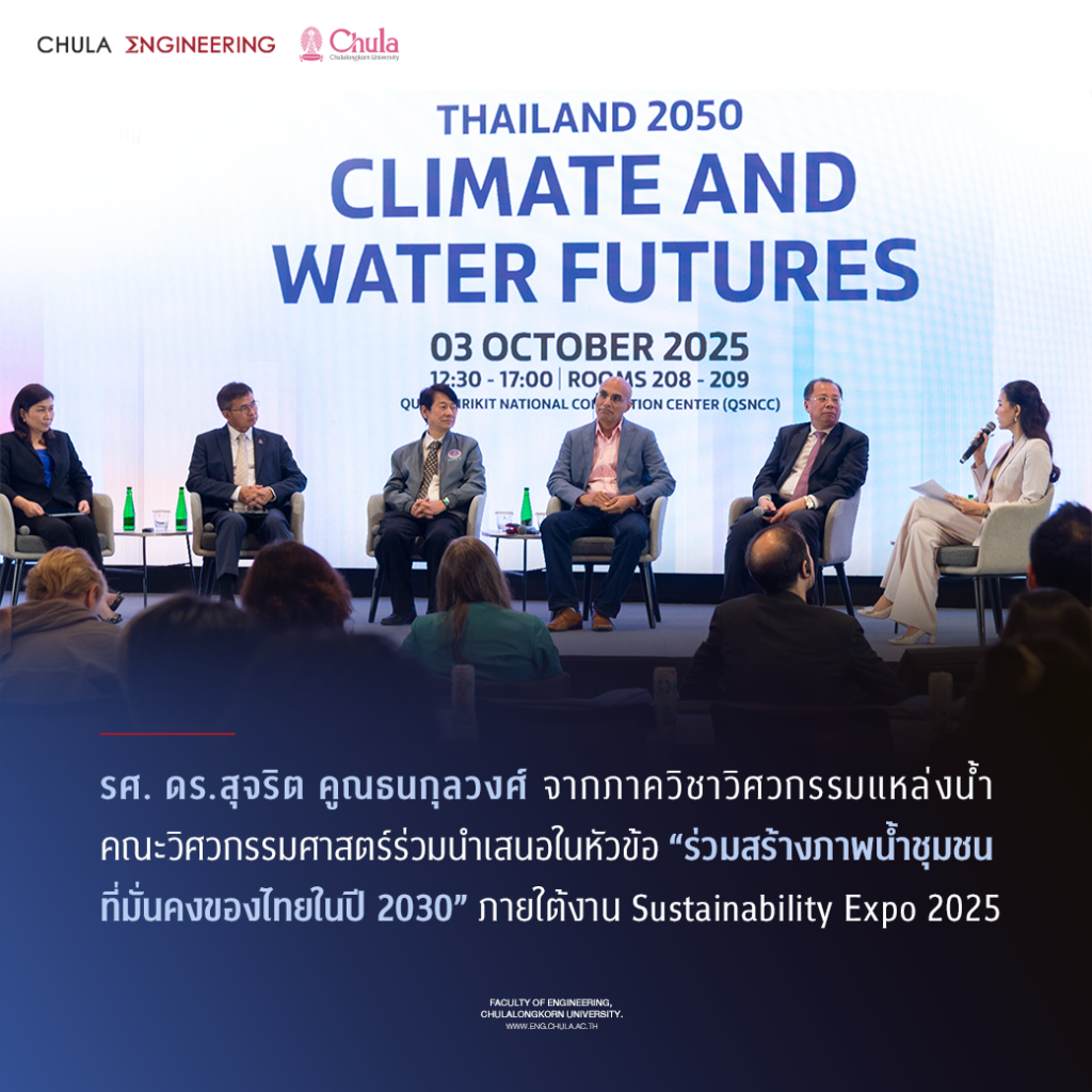 อาจารย์คณะวิศวฯ จุฬาฯ ร่วมนำเสนอในหัวข้อ “ร่วมสร้างภาพน้ำชุมชนที่มั่นคงของไทยในปี 2030” ภายใต้งาน Sustainability Expo 2025