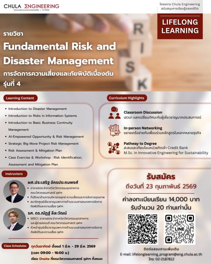 รายวิชา การจัดการความเสี่ยงและภัยพิบัติเบื้องต้น (Fundamental Risk and Disaster Management) รุ่นที่ 4