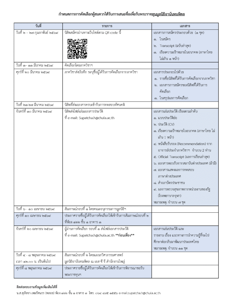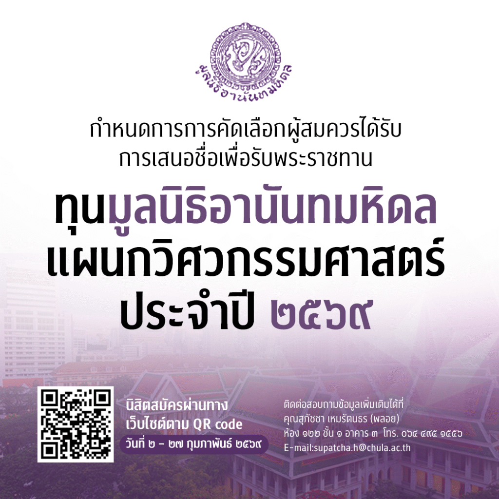 กำหนดการการคัดเลือกผู้สมควรได้รับการเสนอชื่อเพื่อรับพระราชทานทุนมูลนิธิอานันทมหิดล แผนกวิศวกรรมศาสตร์ ประจำปี 2569