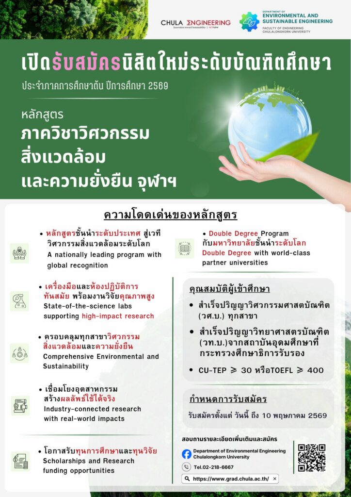 ภาควิชาวิศวกรรมสิ่งแวดล้อมและความยั่งยืน คณะวิศวกรรมศาสตร์ จุฬาลงกรณ์มหาวิทยาลัย