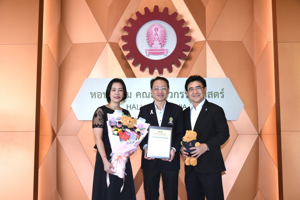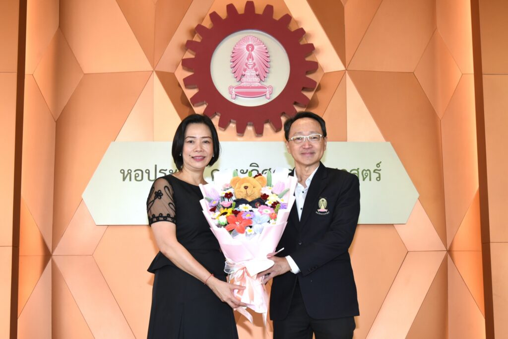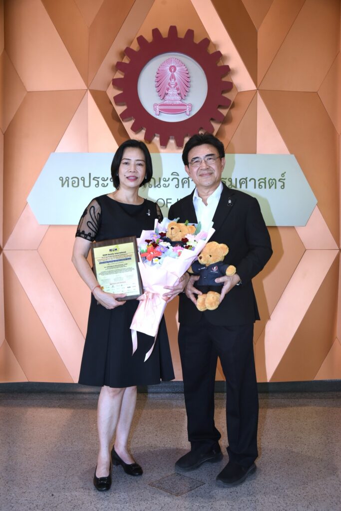 ในโอกาสนี้ รองศาสตราจารย์ ดร.วิทยา วัณณสุโภประสิทธิ์ คณบดีคณะวิศวกรรมศาสตร์ได้ร่วมแสดงความยินดีพร้อมมอบช่อดอกไม้หมีเกียร์ให้กับ รองศาสตราจารย์ ดร.อังศุมาลิน เสนจันทร์ฒิไชย